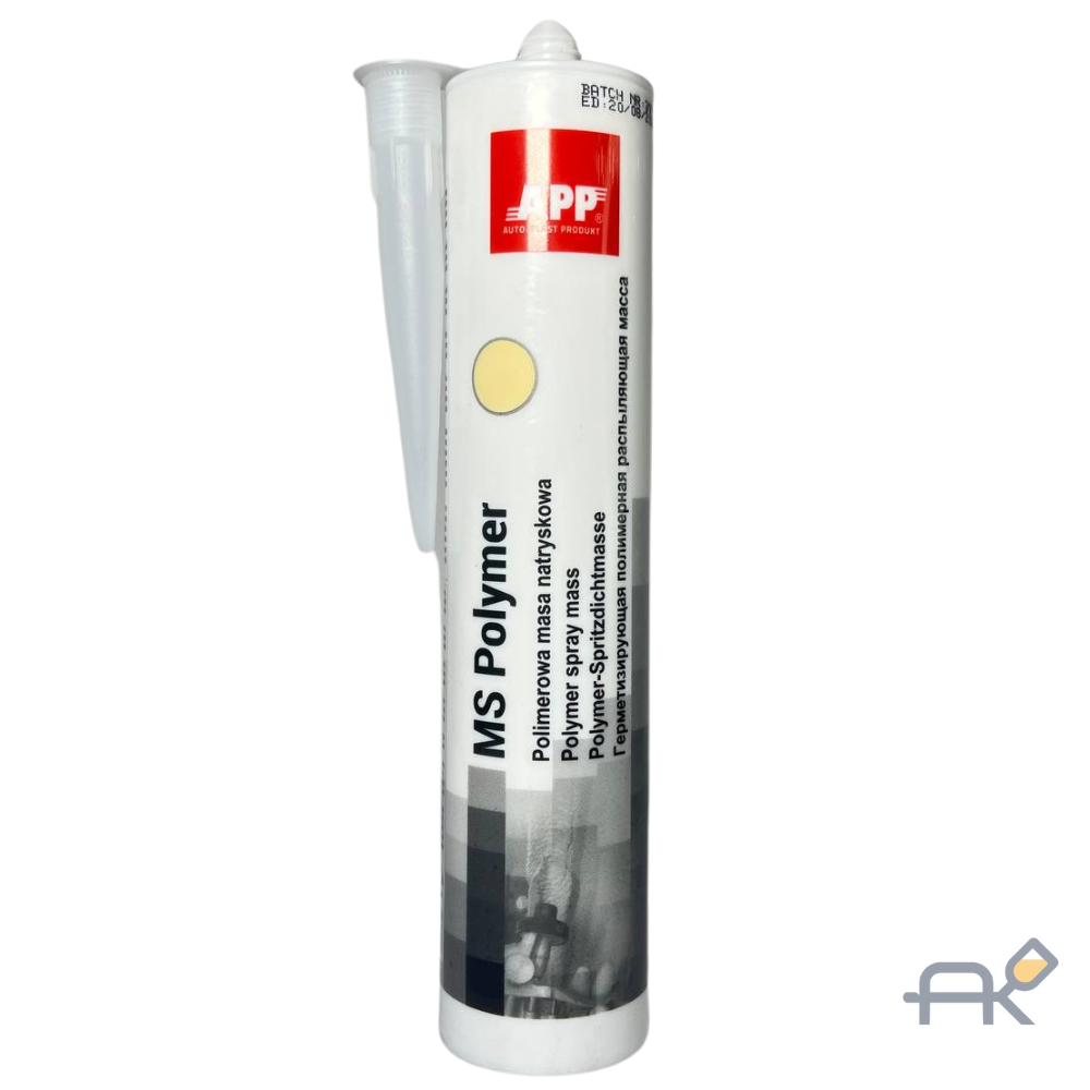 APP MS-POLYMER - эластичная распыляемая полимерная герметизирующая масса, предназначенная для использования в кузовных и покрасочных ремонтных работах. Обладает прекрасной адгезией к: стеклу, нержавеющей стали, анодированного алюминия, лаковым и эмалированным поверхностям, а также обогащенным пластикам, стекловолокну. Может покрываться лаками и красками, которые используются для ремонта автомобильных кузовов. Термостойкость: от -40ºС до +100ºС.