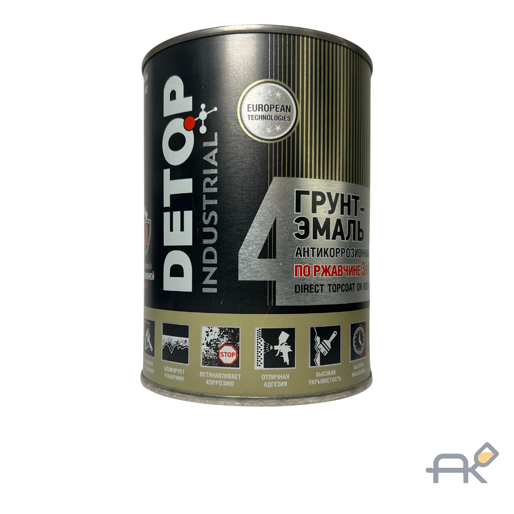 DETOP 4 - Грунт-эмаль по ржавчине 3 в 1 - 8016 коричневая 0.75л