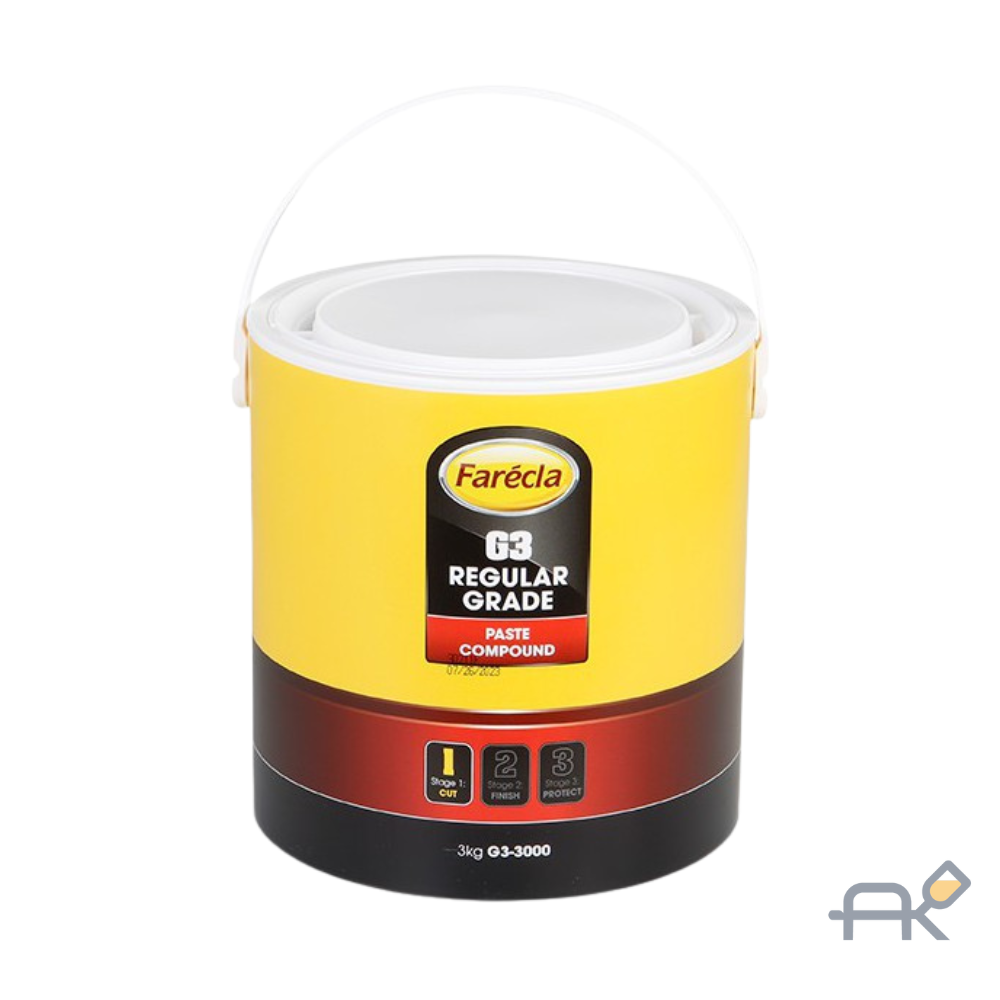 FARECLA G3 Regular Grade Paste Compound — это универсальная абразивная паста пастообразной консистенции, разработанная для первого или основного шага полировки. Паста G3 предназначена для быстрого и эффективного удаления глубоких дефектов, таких как следы от абразива P1500, наплывы, шагрень, потеки и серьезная оксидация, с большинства типов лакокрасочных покрытий. Ключевым преимуществом является ее способность обеспечивать постоянный результат без использования силиконовых наполнителей (филлеров), которые лишь маскируют царапины.