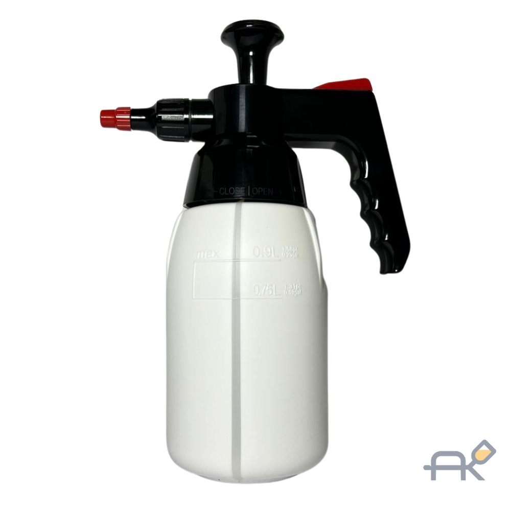 Немецкий профессиональный распылитель с бачком 1л и пневматическим насосом для распыления антисиликона и сольвентных обезжиривателей. Не гарантируется сохранение работоспособности при распылении таких веществ, как растворители и разбавители, содержащие активные компоненты (ацетон, хлорированные углеводороды).