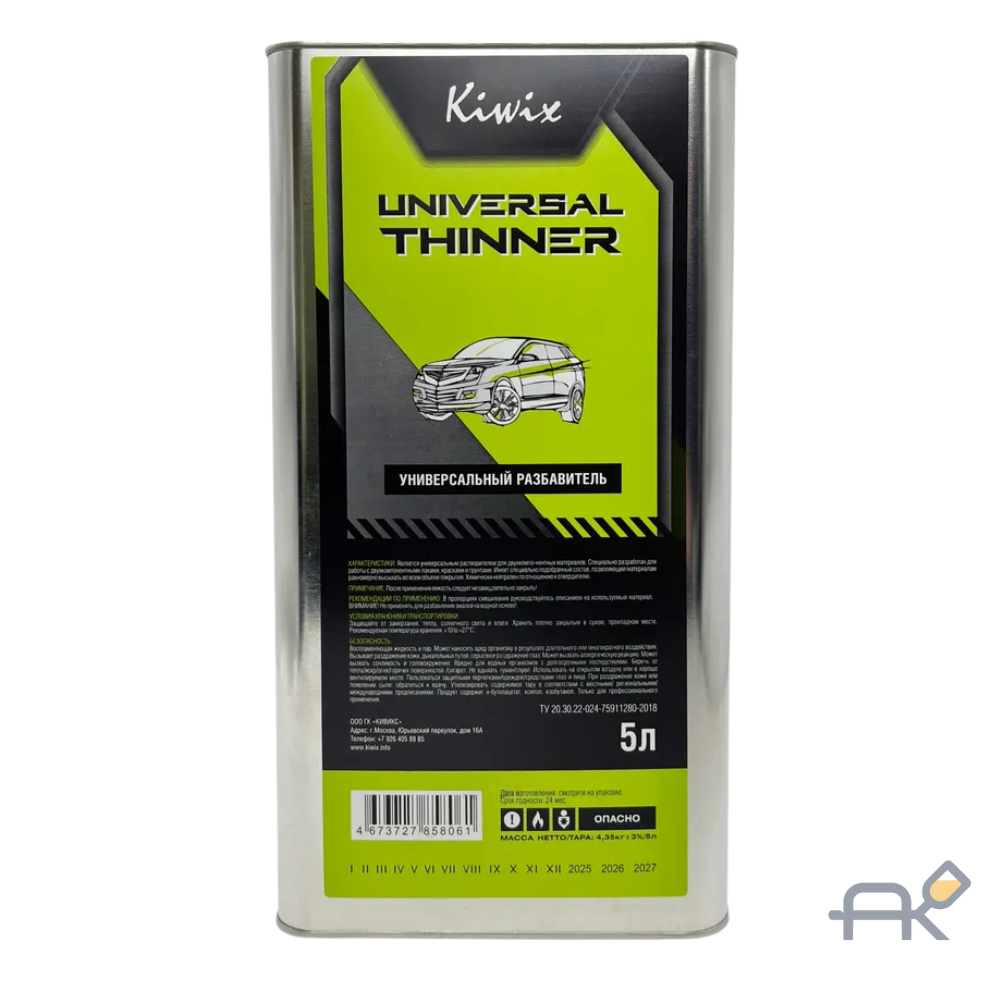 KIWIX 4502 разбавитель базовый 5л(STANDART) - универсальный растворитель для 2к материалов. Специально разработан для 2к лаков, красок и грунтов. Имеет специальный состав, который позволяет материалам равномерно высыхать во всем объеме покрытия. Химически нейтрален к отвердителям.