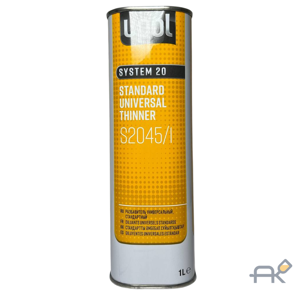 Мультифункциональный стандартный разбавитель 2045 U-POL идеален для ремонта больших поверхностей. Используется с грунтами, лаками и большинством базовых покрытий на основе органических растворителей.