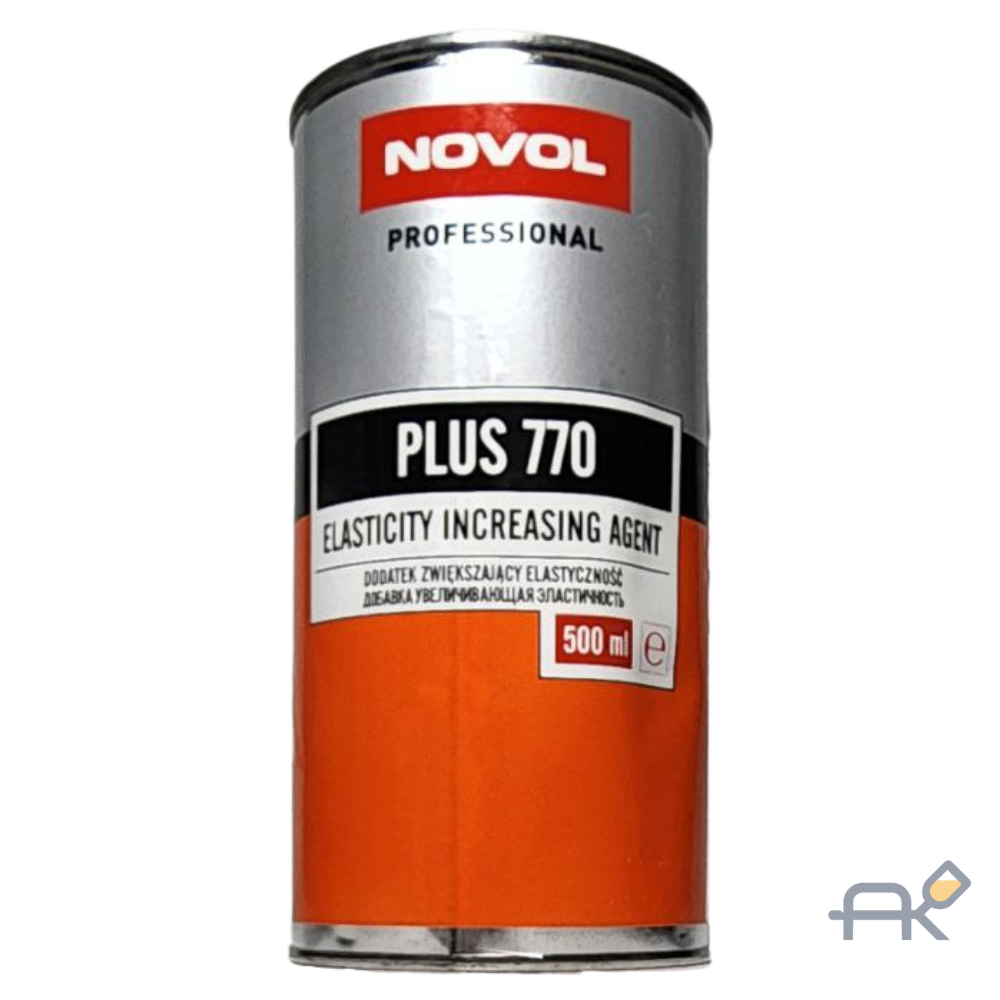 PLUS 770 - добавка увеличивающая эластичность продуктов производства NOVOL. Пластификатор для акриловых и полиуретановых продуктов, предназначенный для ремонта пластиковых деталей кузова. Предотвращает появление трещин и сколов грунта и лака на эластичных элементах. Также данный продукт можно применять для придания эластичности лакокрасочному слою на металлических элементах для защиты от ударов камней.