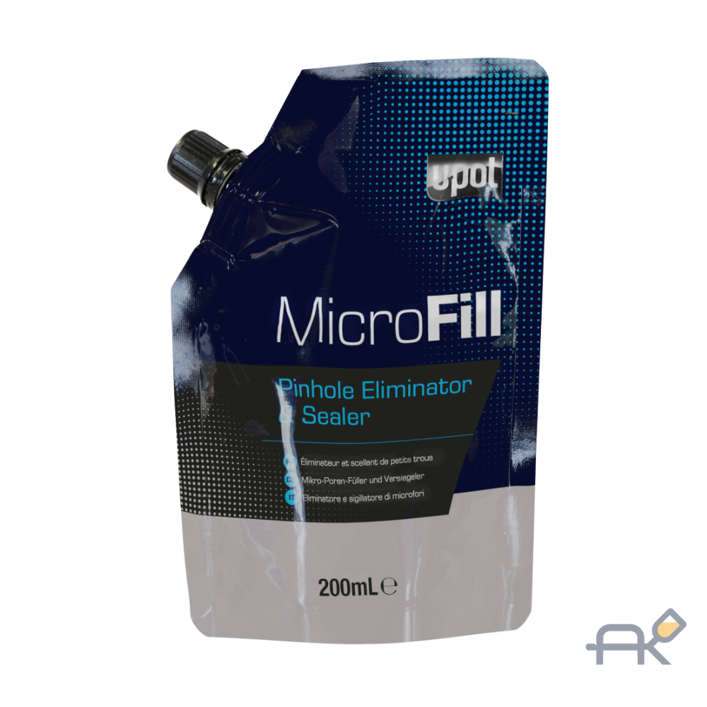 Шпатлевка U-POL Microfill (0.2 л) — это инновационный однокомпонентный шпатлевка-герметик (Pinhole Eliminator and Sealer) в виде пасты, разработанный для устранения микропор и царапин (не видимых глазу) на уже зашпатлеванных и отшлифованных поверхностях перед грунтованием. Она действует как уплотнитель, герметизируя пористые участки, что позволяет снизить расход грунтовки до 30% и минимизировать необходимость в повторной обработке. Microfill прост в использовании, так как является 1К-пастой (не требует смешивания с отвердителем) и готов к окраске без шлифования уже через 15 минут.