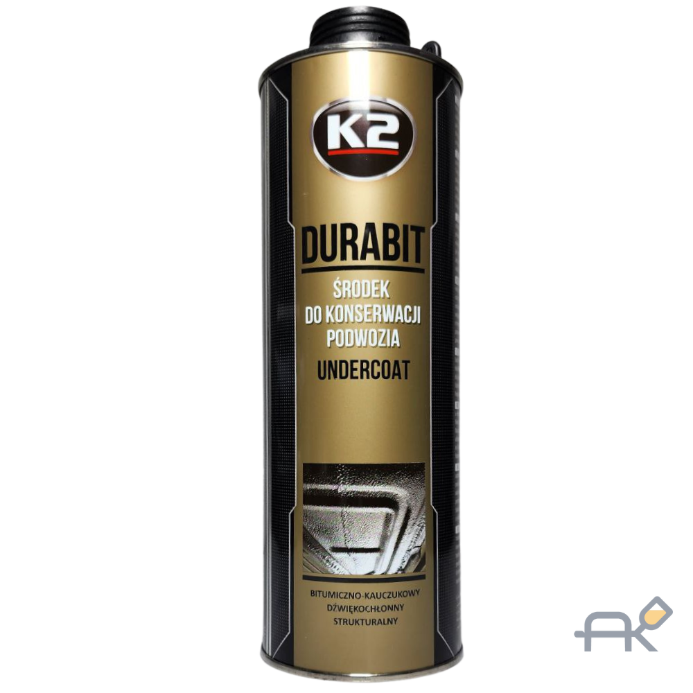 K2 DURABIT — долговечное и эффективное средство для ухода за шасси на основе битума и каучука. Продукт защищает шасси и пороги от воздействия механических факторов, таких как удары камней, воды, соли. Обладает звукопоглощающим эффектом, создает четкую структуру.