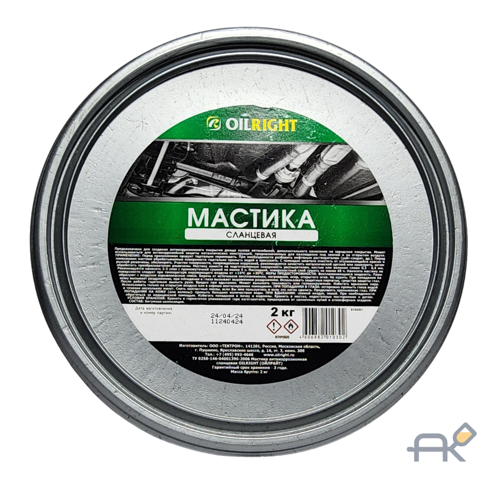 Мастика антикоррозионная сланцевая OILRIGHT 2 кг (6100) используется для восстановления антикоррозионного покрытия днища кузова автомобилей, дополнительного нанесения на заводские покрытия, а также используется для защиты металлических конструкций, находящихся под землей и на открытом воздухе. Защищает кузов автомобиля от абразивного воздействия песка, ударов камней. Обеспечивает снижение шума в салоне, имеет высокую стойкость к воздействию кислот и солей. Температурный интервал применения: не ниже +20°С (время высыхания 48 часов).