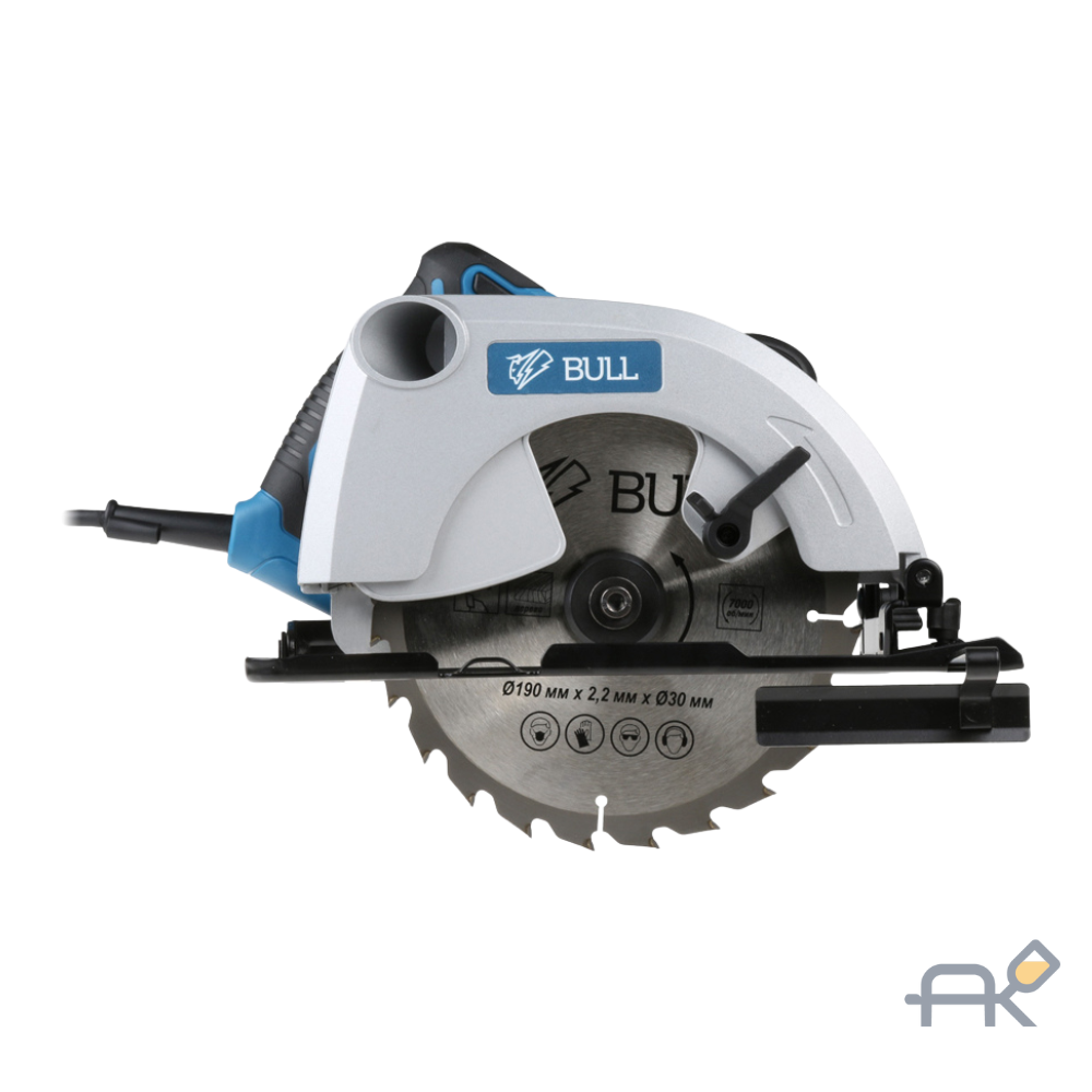 Циркулярная пила BULL KS 1901 в кор. 1500 Вт. 190х30 мм. до 66 мм (Литая алюминиевая платформа. 6000 об/мин)  07018126