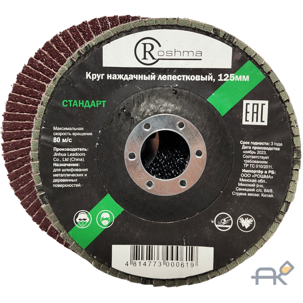 Круг наждачный лепестковый, 125х22,2 мм, “СТАНДАРТ” Р40, Рошма для шлифования металлических и деревянных поверхностей.