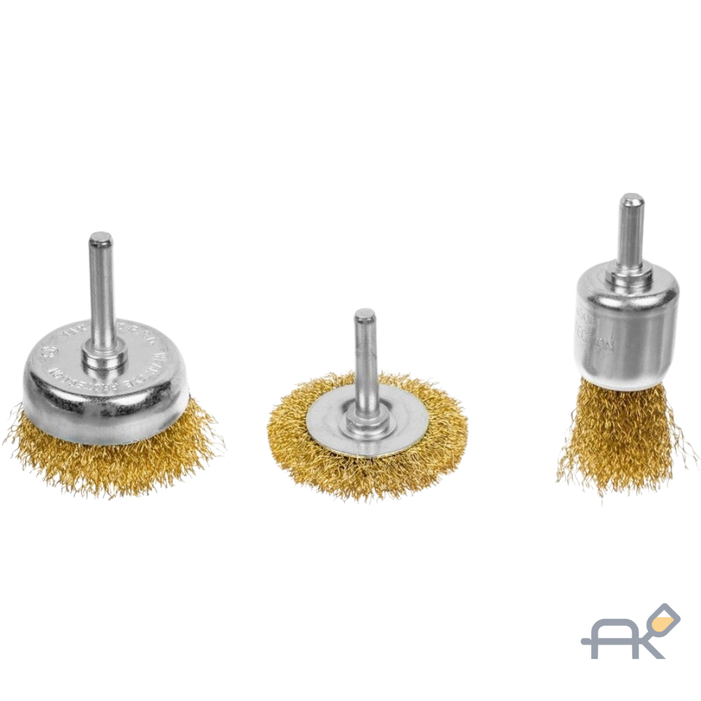 - Формы щеток в наборе: Дисковая, Чашечная, Кистевидная (торцевая)