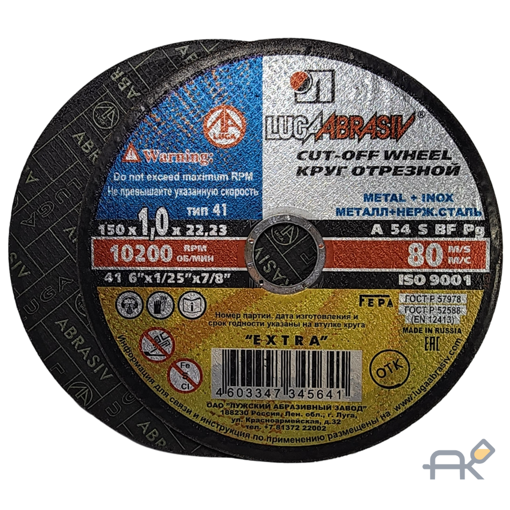 Круг отрезной 150х1.0x22.2 мм для металла LUGAABRASIV (4603347345641)