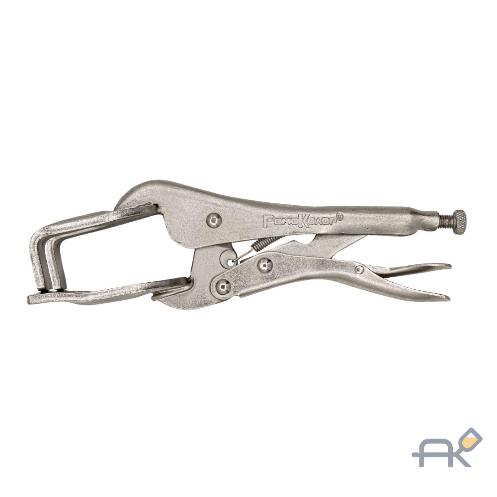 Двойной ручной зажим 225 мм, используется для точечной фиксации деталей различной формы. Необходим при проведении сварочных и слесарно-монтажных работ. Форма губок позволяет зажимать заготовки в двух точках одновременно, а запирающий механизм не дает им раскрыться.