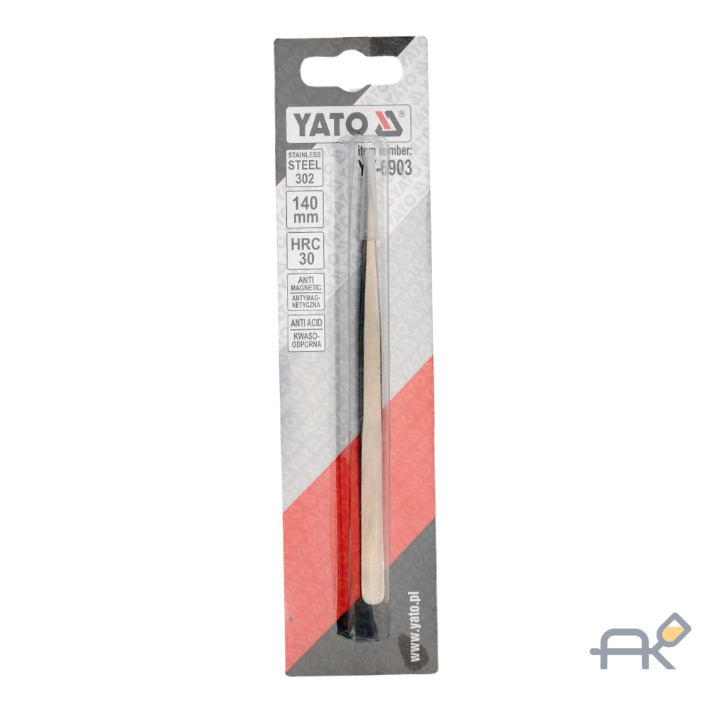 Пинцет 140 мм YATO (YT-6903) - пинцет из нержавеющей стали. Твердость 30 HRC. Антимагнитный, кислотостойкий.