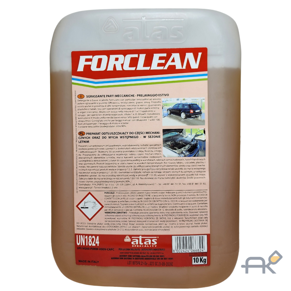 Средство для очистки механических частей ATAS Forclean 750 мл - щелочное чистящее средство на водной основе предназначено для удаления жира, масла и осадка с механических деталей. Содержит особые ПАВ, способствующие полному эмульгированию загрязнения, очищает и придает блеск металлическим поверхностям. Прекрасно подходит для очищения двигателей автомобилей, мотоциклов и катеров. Не портит поверхности из пластика или резины. Не содержит запаха.
