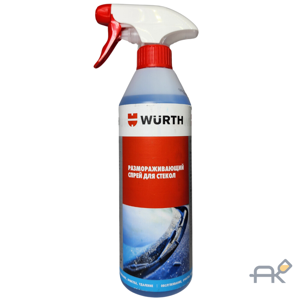 - Распылите спрей Würth Super Anti-Freeze на окна автомобиля сверху вниз. Удалите оттаявший лед скребком или тканью.