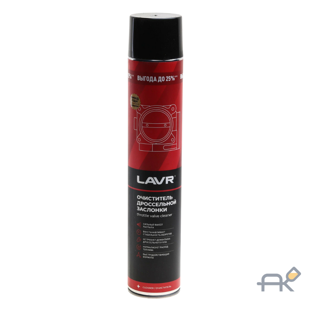 Очиститель дроссельной заслонки в большом аэрозольном баллоне от производителя LAVR chemical company. Средство разработано для быстрого и эффективного удаления нагара, лаковых отложений, копоти и смол, которые скапливаются на дроссельной заслонке, клапане холостого хода (КХХ) и впускном коллекторе. Регулярное использование восстанавливает стабильность работы двигателя и нормализует расход топлива.