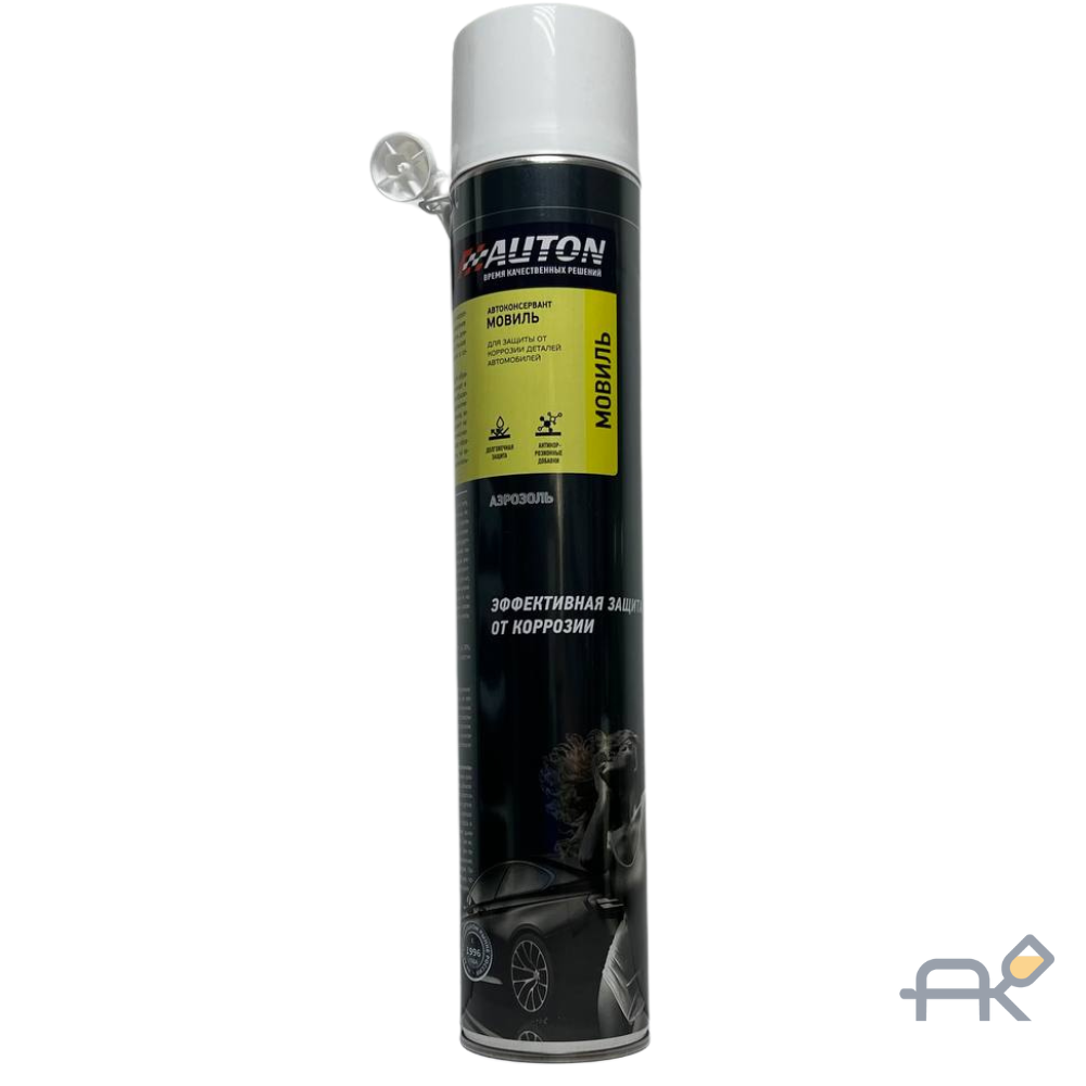 Автоконсервант в аэрозольной упаковке «Мовиль» предназначен для защиты от коррозии скрытых полостей (порогов, корпусов, дверей, стоек, лонжеронов и т.п.) автомобилей и другой техники для временной защиты низа кузова, арок колес и лакокрасочного покрытия в местах стыков и соединений деталей кузова. Средство обладает хорошей проникающей и пропитывающей способностью. Допускается использовать автоконсервант в скрытых полостях, ранее обработанных консервирующими составами, наносить на ржавую и влажную поверхность, а также на заводские антикоррозионные покрытия.
