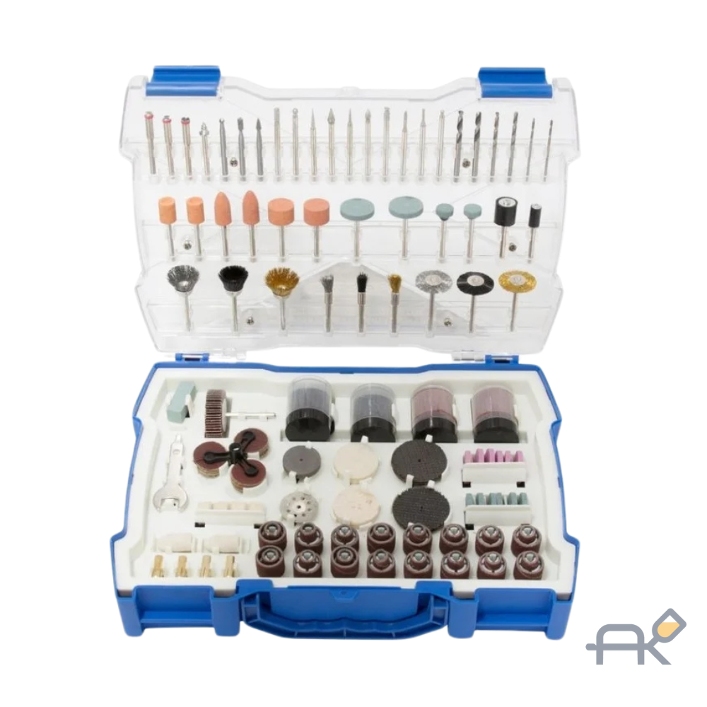 Набор аксессуаров для мини-дрелей, 239пр., в пластиковом кейсе. Можно использовать для гравировки, шлифовки, резки и сверления, полировки и др. Насадки идеально подходят для резки различных материалов, включая металл, мягкую и твердую древесину, стекловолокно, пластмассу. Фрезы можно использовать для рисования, надписей и декорирования мягких металлов, пластика и стекла и для достижения различных эффектов.