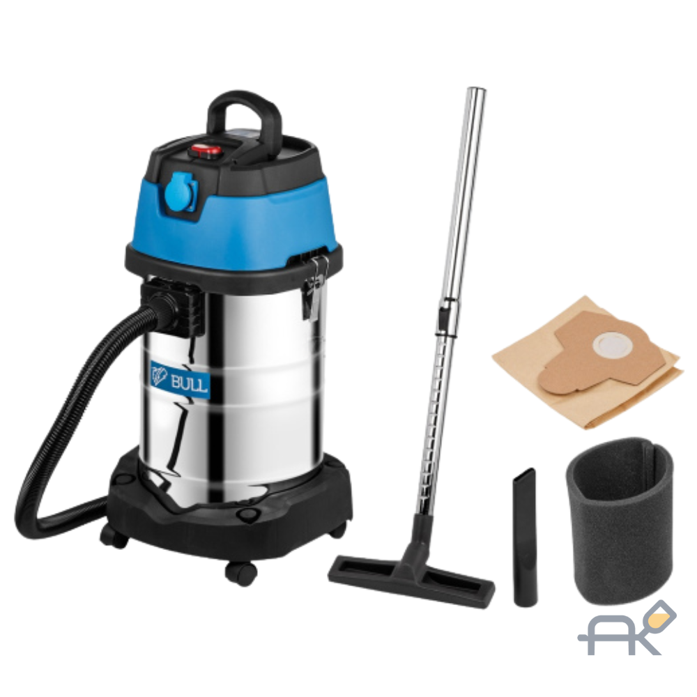 Пылесос BULL AS 3001 + аксессуары 1400 Вт. 30 л. 6м кабель. 3м шланг. HEPA. мануал.. выдув (класс: L очистка: мануальная автовключение. выдув. 2 фильтра. розетка 2000 Вт) 15030129
