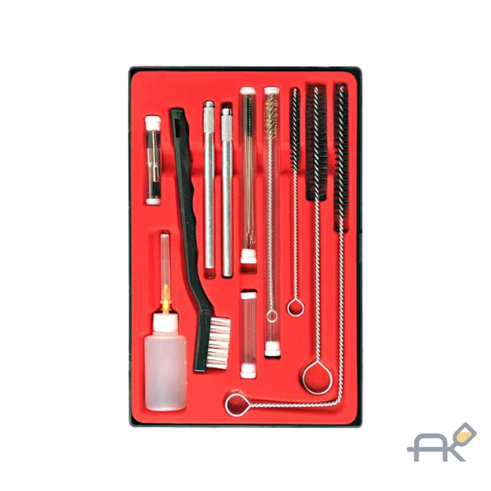 Набор для чистки воздушного и безвоздушного краскопульта – это необходимый в работе инструмент, который поможет содержать в идеальном порядке окрасочное оборудование. В комплект поставки входит 22 предмета, что позволяет использовать щетки разного типа в соответствии с вариантом загрязнения. Все они изготовлены из качественных материалов, что помогает быстро очистить краскопульт. Универсальный набор с одинаковым успехом применяется как в воздушных, так и в безвоздушных краскопультах. Своевременная очистка этих приборов от загрязнений поможет повысить качество работы и продлить срок их эксплуатации.