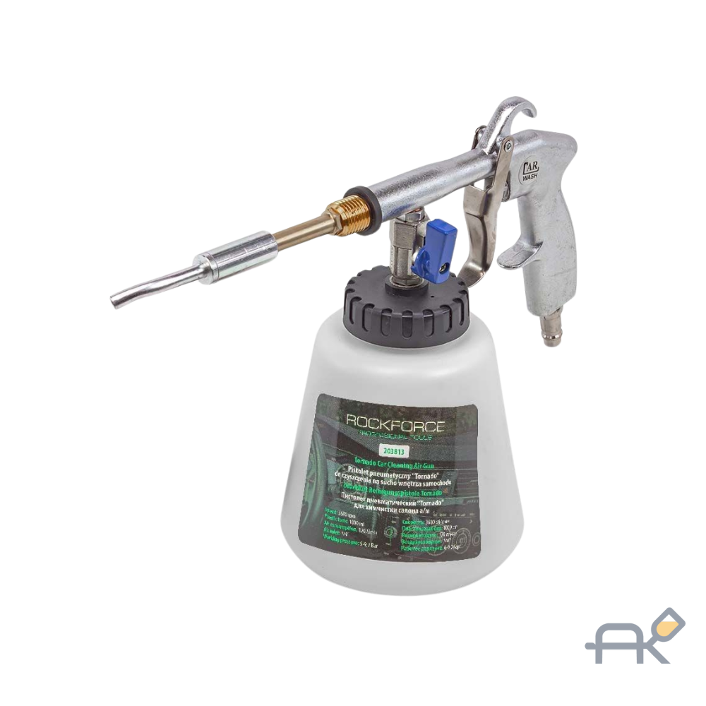 Пистолет пневматический "Tornado" для химчистки салона Rockforce. Профессиональный аппарат для химчистки салона автомобиля, подключаемый к пневмолинии (компрессору). Обеспечивает глубокую и эффективную очистку различных поверхностей: текстиль, пластик, кожа, резина и другие.
