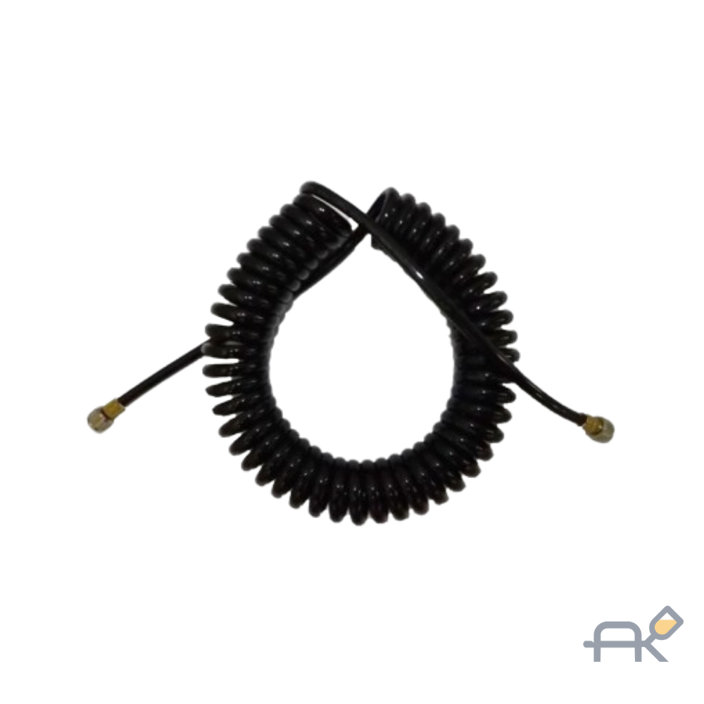 • Витая форма (Спираль): Позволяет шлангу компактно собираться, когда аэрограф находится близко к компрессору, и растягиваться на необходимую длину без образования петель под ногами.