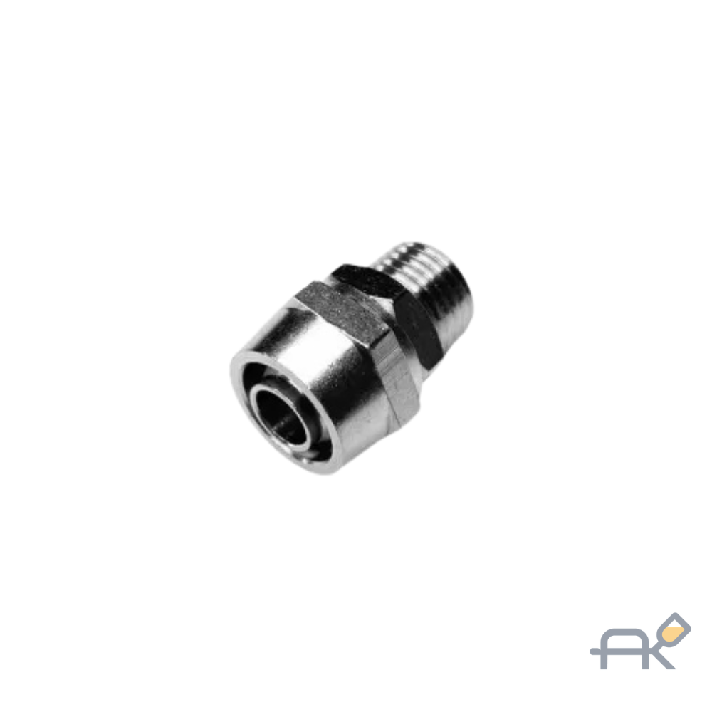 • Наружная резьба 1/4 дюйма: Стандартный типоразмер для большинства пневматических систем. Позволяет вкручивать фитинг напрямую в выходы компрессоров, краскопультов (через переходники), блоки подготовки воздуха или пневмораспределители.