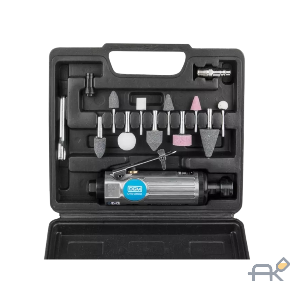 Пневмошлифмашина прямая DGM DTG-2502 с набором шарошек (25000 об/мин 115 л/мин Цанги:3 мм/6 мм 10 шлифкамней Чемодан) (DTG-2502)