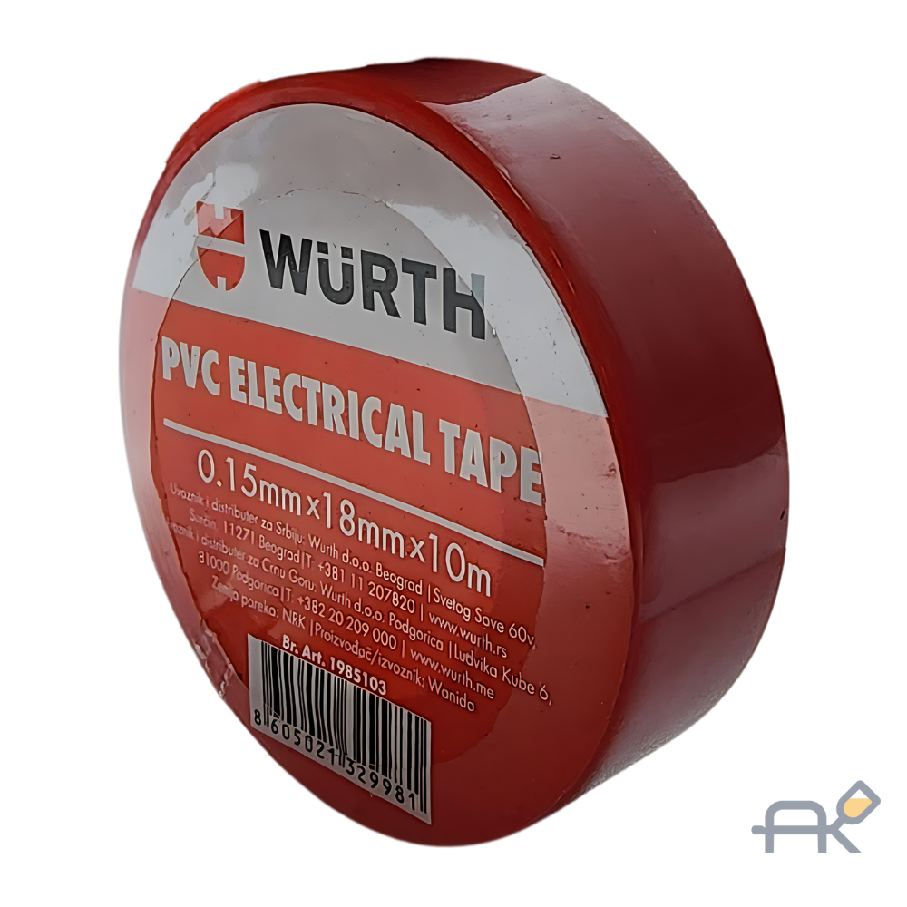 Изолента красная 18мм х 0.1 х 10м WURTH (1985103)