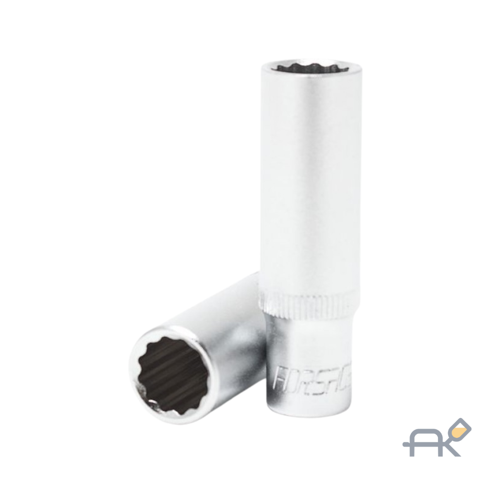 Глубокая (удлиненная) торцевая головка Forsage (артикул F-5356318) — это специализированный инструмент профессионального уровня. Она предназначена для работы с шестигранным крепежом, расположенным на длинных шпильках или в глубоких нишах, где стандартная короткая головка не сможет обеспечить захват гайки. Формат 3/8 дюйма является отличным компромиссом между мощностью и компактностью.