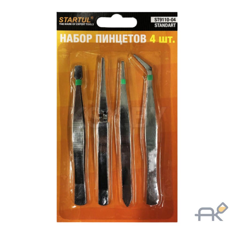 Набор пинцетов STARTUL Standart 4 предмета состоит из инструментов с различными формами губок и применяется, в основном, для ремонта электроники.