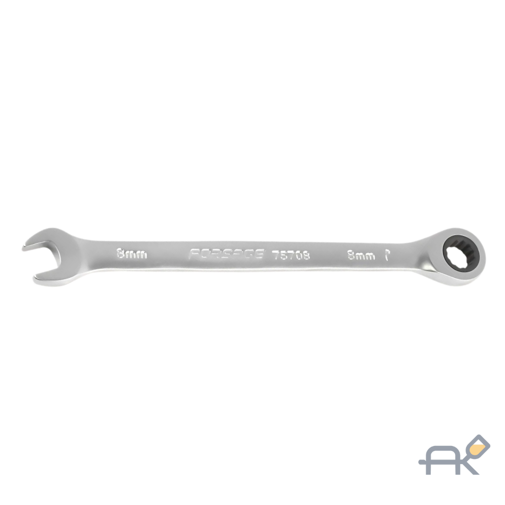 Ключ комбинированный трещоточный 8мм F-75708 - предназначен для монтажа либо демонтажа резьбовых соединений, откручивания и закручивания различных соединений, болтов или гаек.