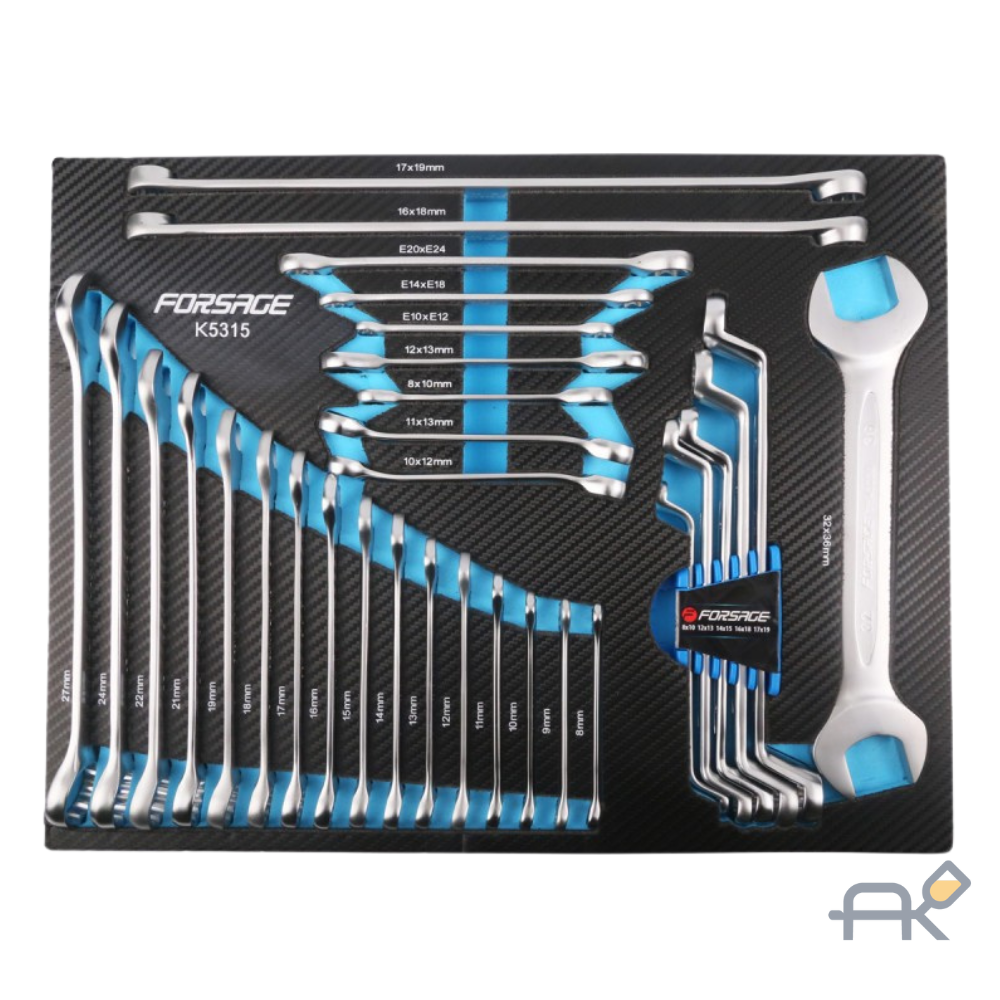 Комбинированные ключи: 8, 9, 10, 11, 12, 13, 14, 15, 16, 17, 18, 19, 21, 22, 24, 27 мм