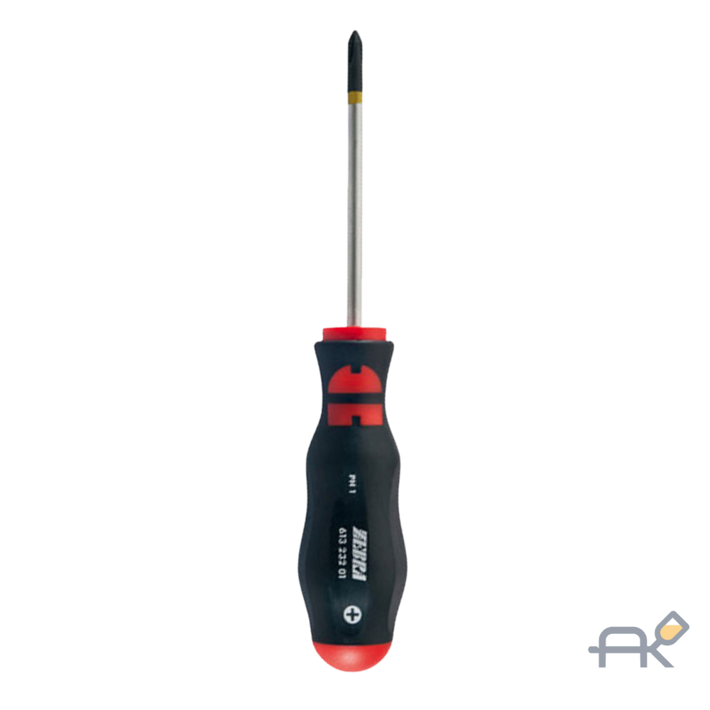Отвертка крестовая применяется при работе с крепежными изделиями, имеющими головки PH (Philips). Стержень изготовлен из специального хроммолибденванадиевого сплава с наконечником «Black point», который обеспечивает высокое усилие, точность и посадку. Эргономичная двухкомпонентная рукоять увеличивает удобство при работе с инструментом.