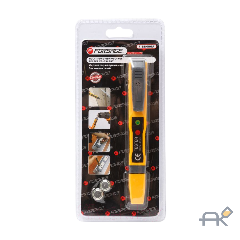 Индикатор напряжения Forsage в блистере 28412 F-88406A - универсальный инструмент, который можно использовать даже со скрытой проводкой. Работает в контактном и бесконтактном режимах. Удобная форма и небольшой дисплей обеспечивают высокое качество работы. Также имеется колпачок для защиты стержня.
