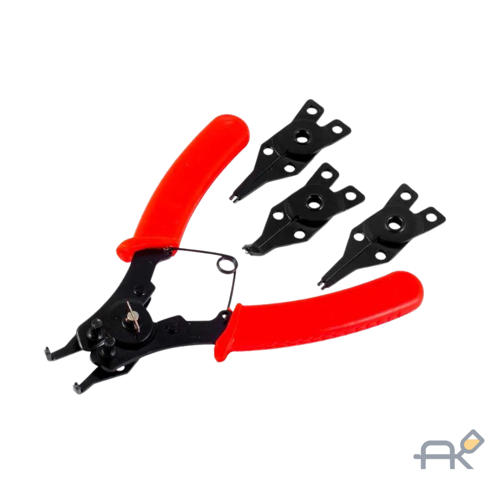 Универсальный комплект щипцов 34-9-800 - используются для работы со стопорными кольцами. Оборудование поставляется с комплектом насадок. Каждая насадка имеет различную форму, что позволяет выполнять широкий диапазон демонтажных работ. Комплект подходит для снятия стопорных колец различных типов.